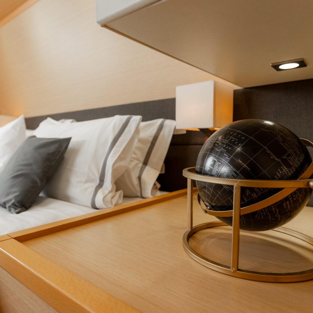 Her layout is unmatched by any other catamaran of her size and her living space is phenomenal, including 5 truly huge totally independent cabins, an impressive sense of space in the saloon and galley, ample lounging space on the flybridge and more roominess than you could ask for dinning and lounging in the vast aft cockpit. Indulge yourself on a yacht considered by many the ultimate voyager’s catamaran!